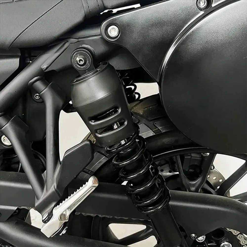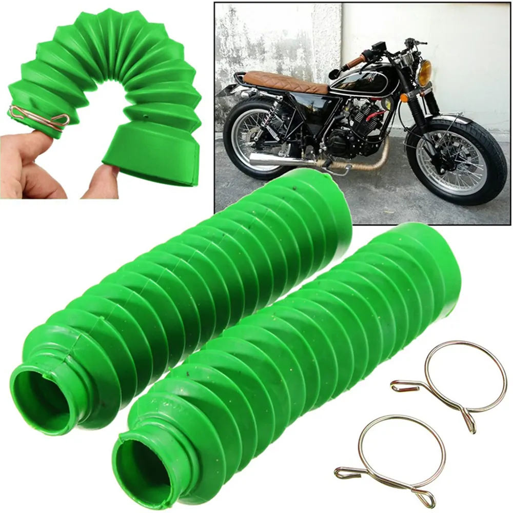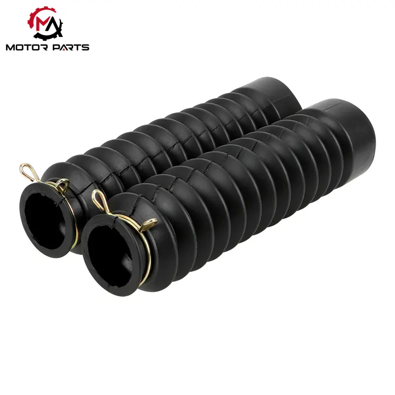 پوشش گرد و غبار کمک فنر جلوی موتورسیکلت از مواد بسیار الاستیک و نرم ساخته شده است که می تواند به طور موثر ارتعاشات ظریف ناشی از انبساط و انقباض کمک فنر را کاهش دهد و در عین حال باعث کاهش قابل توجه صدای ناشی از ارتعاشات و در عین حال بهبود راحتی سواری شود. برخی از محصولات به طور ویژه با ساختارهای ضخیم طراحی شده اند که در مقایسه با مدل های معمولی باعث افزایش 30 درصدی وزن می شوند. آنها می توانند به شدت در برابر ضربه های خارجی مانند ضربه های کوچک سنگ و خراش شاخه های درخت مقاومت کنند و از کمک فنرها محافظت کنند.
