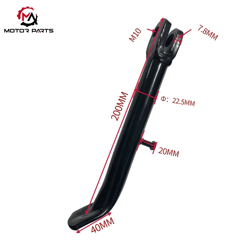 پایه پشتیبانی ضد لغزش: انتهای دیگر مجهز به یک پایه پشتیبانی با طراحی ویژه است که دارای سطح منحنی صاف و الگوهای ضد لغزش الماسی در پایین است. این طراحی به طور موثر سطح تماس و اصطکاک با زمین را افزایش می دهد و خطر سر خوردن موتور سیکلت در هنگام پارک را کاهش می دهد.
