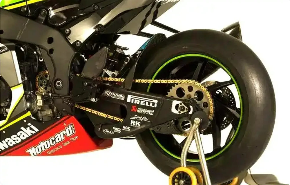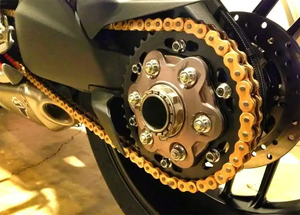 در میان طرح های انتقال برق بسیاری از موتور سیکلت ها ، سیستم انتقال زنجیره ای و چرخش به دلیل ویژگی های ساده و کارآمد ، به گزینه ای برای بسیاری از موتور سیکلت ها تبدیل شده است. دارای راندمان انتقال بالا و وزن کلی سبک ، به ویژه برای انواع وسایل نقلیه که به گشتاور بالایی نیاز دارند مناسب است. با این حال ، همچنین محدودیت های خاصی مانند سایش و سر و صدا در حین کار دارد. در طی فرآیند انتقال قدرت موتور به چرخ های عقب ، با تنظیم نسبت دندان چرخ دنده های جلو و عقب می توان تنظیم نسبت گشتاور و تنظیم نسبت کاهش را بدست آورد.