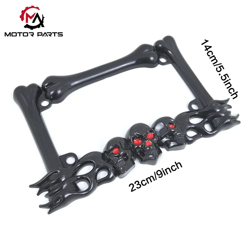 طراحی نوآورانه از فناوری تسکین بالا برای ایجاد اشکال جمجمه واقعی استفاده می کند، عناصر تیره مانند استخوان های متقاطع، خنجر و شعله را با هوشمندی ادغام می کند، وضوح دندان های صورت جمجمه و عمق حفره های چشم را به نمایش می گذارد و جلوه بصری استریوسکوپی بسیار پویا را به ارمغان می آورد. با در نظر گرفتن محصولات سفارشی پلتفرم Etsy به عنوان مثال، کریستالهای سواروسکی با دقت در چشمهای جمجمه تعبیه شدهاند و 27 رنگ خیرهکننده را ارائه میدهند که نه تنها شخصیت منحصربهفرد را به نمایش میگذارند، بلکه به قاب پلاک موتورسیکلت استاندارد ABS ایالات متحده تأثیر بصری خیرهکنندهای میدهند.
